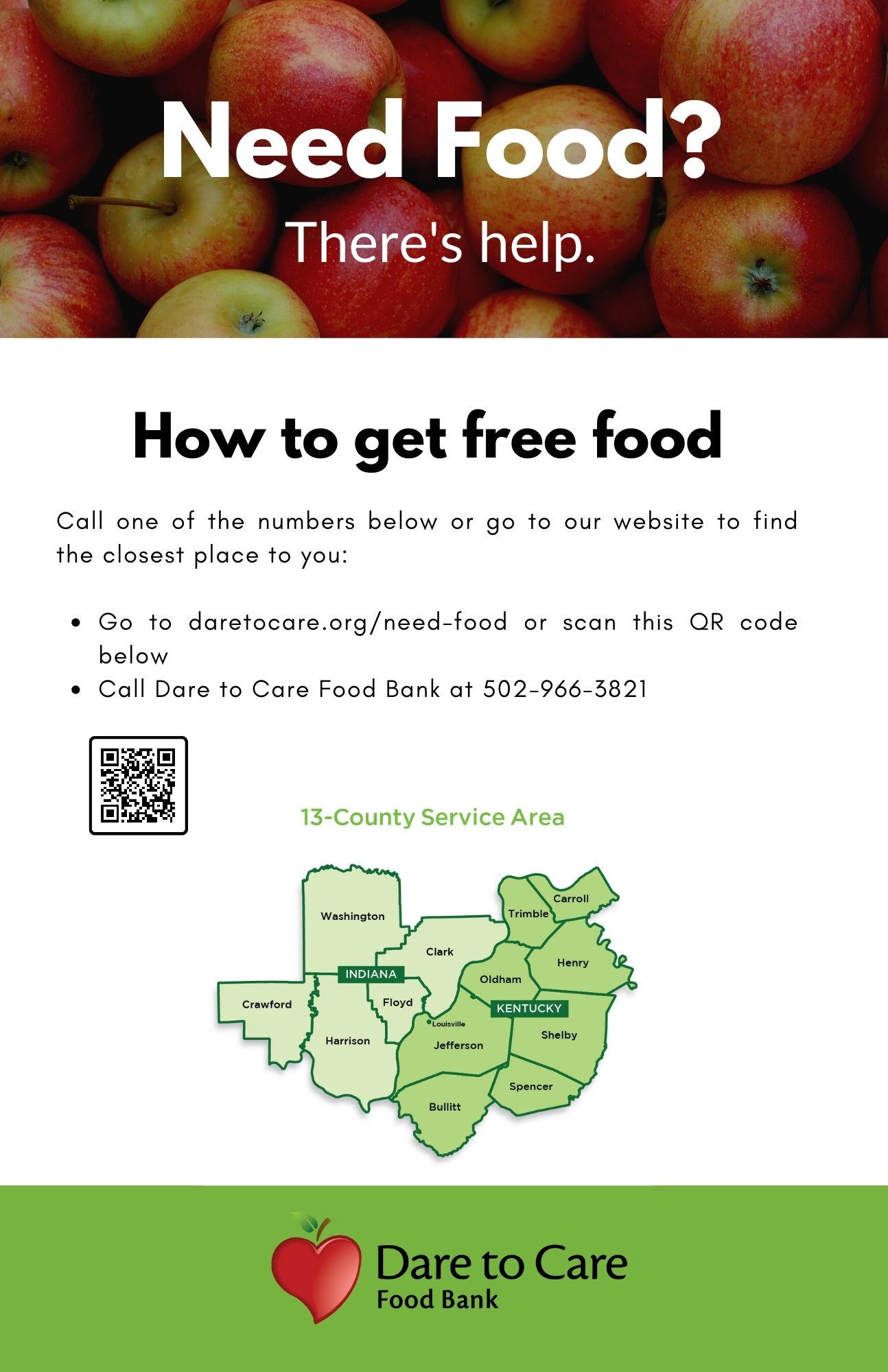 Dare to Care Food Bank reaches our neighbors experiencing food insecurity through our network of more than 200 food fighting partners. While we provide food to our neighbors through programs, we provide thousands of pounds to our food fighting partners who serve the community in our 13 counties across Kentuckiana.